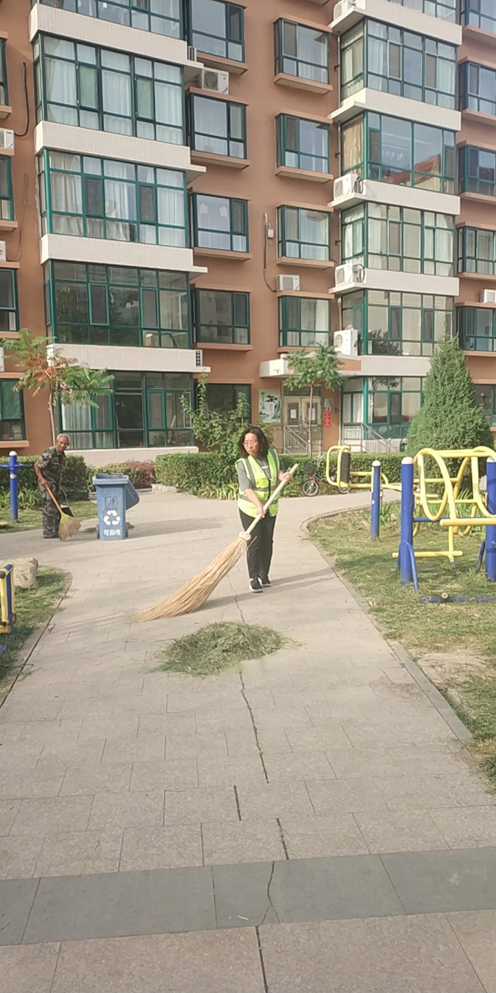 掃把一揮,垃圾全無(wú)(公司志愿者王俏根、高音清掃小區(qū)道路)