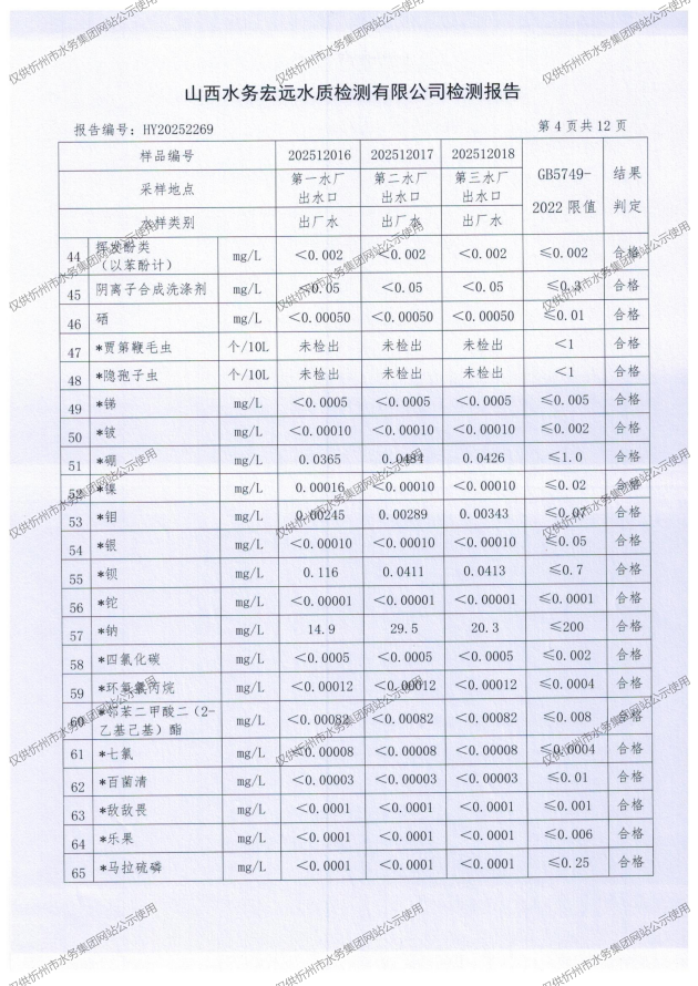 忻州城區(qū)公共供水水源水、出廠水、管網(wǎng)水、管網(wǎng)末梢水2025年12月份水質(zhì)信息公示