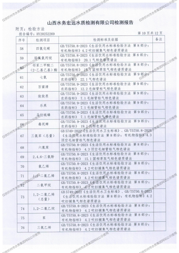 水質(zhì)公告