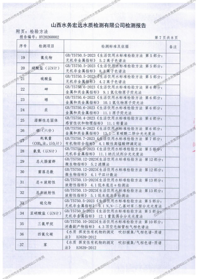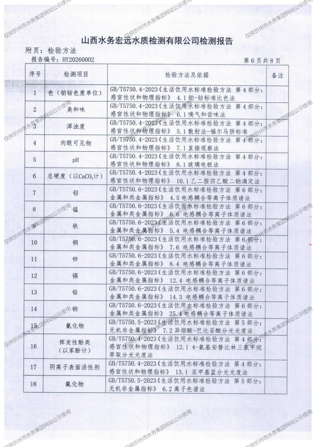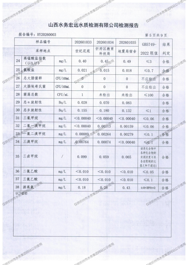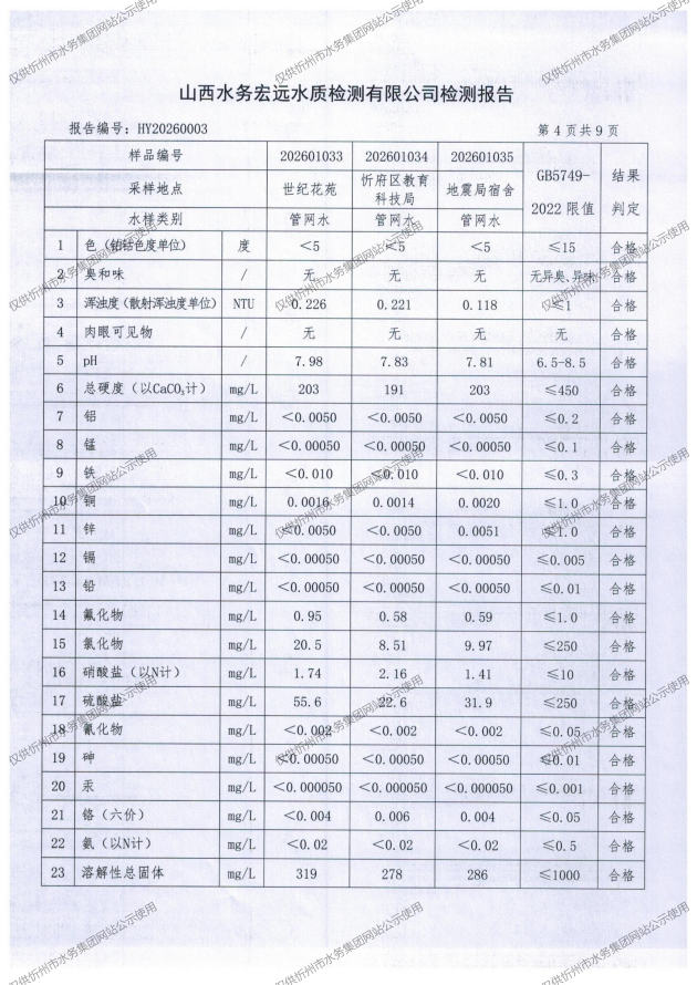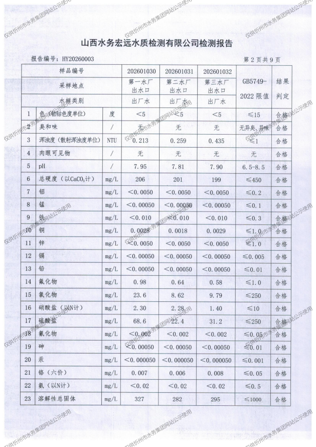 忻州城區(qū)公共供水水源水、出廠水、管網(wǎng)水、管網(wǎng)末梢水2026年1月份水質(zhì)信息公示