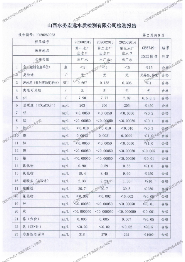 忻州城區(qū)公共供水水源水、出廠水、管網(wǎng)水、管網(wǎng)末梢水2026年2月份水質(zhì)信息公示